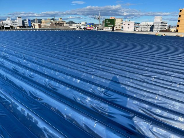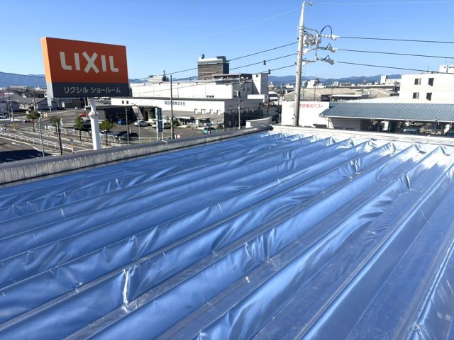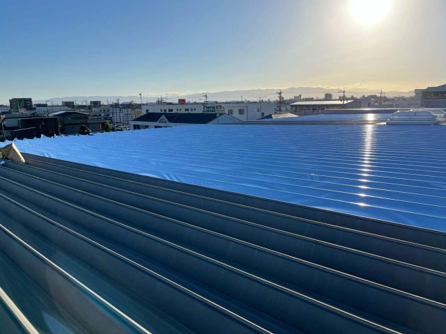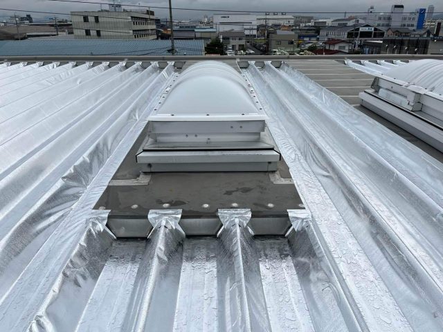 建物は金属の折半屋根でしたので、屋根面に直接遮熱シートを貼る「サーモバリア スカイ工法」をご提案しました。