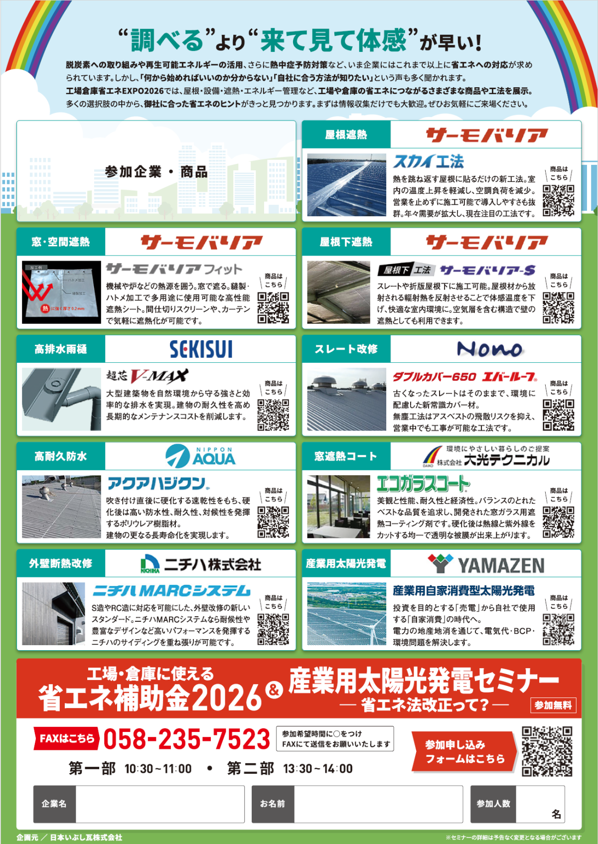 会場では、屋根・設備・遮熱・エネルギー管理など、コスト削減に直結する多様な製品を展示します。